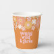 Retro inspired floral Young Wild and Three 3rd birthday cups with 70's style flowers and boho fonts and colours.