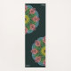 Dark green yoga mats feature a retro-styled flower mandala with personalised white name.