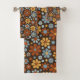A fun floral pattern in the style of the 70's. Brown, blue and yellow colours