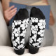 Retro Flower Pattern in White on Black Socks