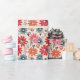 Retro Flower Pattern Red Orange Blue Wrapping Paper