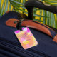 Elevate your travel experience with a custom luggage tag adorned with a cool 70's floral design in hazy summer hues of pink, yellow, and peach. Personalising it is a cinch, perfect for the hip globetrotter.