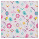 Retro Flowers Birds and Bees on Pink Background Fabric