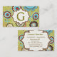 Cute retro flowers turquoise blue brown floral pattern custom monogram business cards, featuring a lovely pattern of abstract flowers in turquoise blue with brown outline on olive green background and your monogram in an ivory frame. Change text to personalise it and add your name or your company. A feminine, girly, floral design with a vintage feel to it.