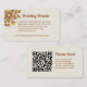 These trendy wedding website enclosure cards feature stylish retro flowers and leaves in vintage neutral colours like brown, beige, gold, olive green, and ivory cream with retro style text. There is a scannable QR code on the reverse.