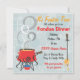 Retro fondue party invitation with a cool and modern feel. Bubbling and steaming pot of cheesy fondue and a skewer with a bread cube and dripping cheese against a retro background. Great for birthday, bachelorette, retirement or dinner parties. Hand drawn illustration by McBooboo.