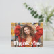 Thank you postcard with the text "thank you" in a retro style font as a white overlay over your custom photo on the front. On the back is the text "graduate" in a retro style font and the year with a custom message below. You can change colours, move and resize elements with the design tool.