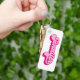 Bright pink and hot pink retro style font on a rectangular keychain for Jennifer.