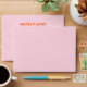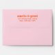 Modern style wedding envelopes featuring a simple and minimal layout with your names in a groovy retro font and your return address in a sans serif font. The bright colour scheme is vibrant orange and pink. The fonts / colours may be changed in the design editing tool.
