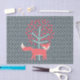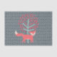 Retro Fox design items for the home, office, and personal use including dry erase boards, pillows, wallets, speakers, serving trays, buttons, cards, stickers, key chains, gift boxes and bags, candy favours, paper plates and magnets, bags, electronic device cases and sleeves, and so much more, all with a cute and colourful design of light blue rock orbs on dark blue, a light blue tree with red ball leaves, and an adorable red fox!