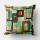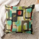 20” x 20” throw pillow with a 50s-style image, on both sides, of black, brown, red and mustard frames, black and yellow patterned rectangles, and turquoise and white squares on tan. See matching round throw pillow, accent pillow and cube pouf pillow. See the entire Nifty 50s Pillow collection in the DECOR | Pillows section.