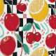 Retro Fruit Chequerboard Kitchen Wallpaper