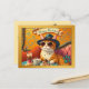 A cute whimsical retro postcard featuring a painting of a cat eating cakes.