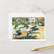 Hilarious European frog race cartoon cottagecore themed whimsical design postcard circa 1940 reproduction.