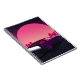Retro future. 80s style sci-fi background with sup notebook