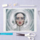 Retro futurism, Cyber Woman in white Tissue Paper