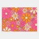 Retro Garden Flowers Groovy 60s 70s Pink Floral Wrapping Paper Sheet
