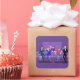 This Retro Gay Bar Sticker design is purple, kitschy, and utterly fabulous! Sitting on mid century modern barstools, drinking their fun, pink beverages, these dapper gentlemen are having a gay ol’ time. The hunky bartender with a pink bowtie is already pouring the next round. The silhouettes of atomic liquor bottles line the wall and the vintage 1960’s sputnik style light fixture hangs off to the side. The only thing straight about this bar is the bar!