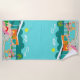 This Retro Gay Pool Party Beach Towel features four hunky beefcakes having a gay old time as they beat the Palm Springs heat by lounging around the turquoise blue water of their atomic boomerang shaped swimming pool. The mid century modern architecture on the fabulous, orange stone house is clearly prime real estate, given the view of the mountains in the background. A yellow starburst sun shines brightly in the turquoise sky so you are able to see every charming detail--from the kitschy, pink flamingos to the 1950’s striped, breezy blocks fence. And of course what Palm Springs House would be complete without a palm tree?