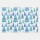 Retro Geo Scandi Christmas Trees Blue & Green Wrapping Paper Sheet