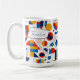 This Memphis-inspired geometric abstract design brings a modern twist to mid-century style with it's playful shapes and bold palette of navy blue, red and gold on a crisp white background. The dynamic composition captures the essence of mid-century modern patterns. This versatile coffee mug design can be easily personalised to suit your unique style using the supplied template. Try out Zazzle's handy transfer option or search ID1067 to see additional patterns and products in this design set. Note: pattern adapted from generative content.
