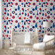 This Memphis-inspired geometric abstract design brings a modern twist to mid-century style with it's playful shapes and bold palette of red, white and blue on a crisp white background. The dynamic composition captures the essence of mid-century modern patterns. Perfect for a modern home office or even a striking bathroom feature wall, this versatile wallpaper design will be a cheerful addition to any room of the house.