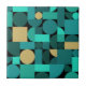 Retro Geometric Art Teal Gold Ceramic Tile