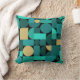 Retro Geometric Art Teal Gold Cushion