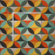 An abstract retro geometric circular pattern in shades of green, brown, burnt orange and gold.