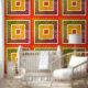 A bold and vibrant geometric pattern featuring layered concentric squares in warm retro tones. The design blends modern aesthetics with a nostalgic 70s-inspired palette, creating a dynamic visual rhythm perfect for artistic, decorative, and contemporary creative projects.