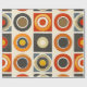 This artwork features a vibrant and bold pattern of concentric circles and squares arranged in a structured grid format. The design showcases a retro-inspired colour palette of warm oranges, deep browns, yellows, and creams, creating a nostalgic yet modern feel. Each circle is perfectly centred within its square, with the repeating patterns creating a rhythmic and balanced composition. The use of strong, contrasting colours and geometric shapes gives the piece a dynamic and visually engaging appearance, reminiscent of mid-century modern design.