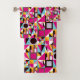 Retro Geometric Hot Pink Black Pattern Design Bath Towel Set