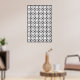 A tasteful retro geometric leaf/flower pattern in white on a black background.