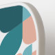 This retro and modern pickleball paddle features a your name or text on a white background with geometric patterns in sky blue, navy blue, teal, and pink. Personalise it for your needs.