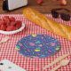 Check out this design featuring squiggles and geometric shapes.