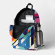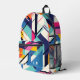 A bright geometric retro pattern on an all over print bag. Customise this design with your name for that personal one of a kind touchy.
