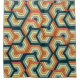 Custom shower curtain featuring 70s inspired vintage colours retro geometric shapes pattern on green and orange.