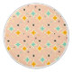 Retro geometric pattern with teal, orange, and black star-shaped diamonds on a peach background. The design conveys a playful, vintage feel.