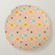 Retro geometric pattern with teal, orange, black round cushion