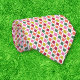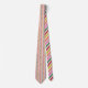 Add some joy to your Christmas outfit with this patterned necktie featuring a simple geometric pattern in a retro 1970s colour palette of red, lime green, orange, pink and green against a white background. The reverse side has a coordinating diagonal striped pattern.