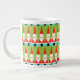 Any way you look at it this Retro Geometric Santa Jumbo Mug is pure holiday whimsy! It’s rows of Santas. No, it’s rows of Christmas trees. No, it’s rows of Santas shaped like Christmas trees and rows of cheery green Christmas trees with white polka dots. It’s kitschy. It’s colourful. And it if doesn’t put you in the holiday spirit, something is definitely wrong with you! Each identical triangular Santa Claus is wearing his trademark red and white suit and hat. Each hat has a yellow starburst on top, which serves as a tassel for Santa’s headwear and a vintage star for a Christmas tree. Old Saint Nick has a well-groomed white beard, jolly red nose and cheerful curved eyes. Each Santa’s black boots also serve as a trunk to a Christmas tree. Where Santa’s feet and tree trunks meet, there is a stripe of mid century inspired aqua. A purchase of this product is guaranteed to keep you off the naughty list no matter what you’ve done!