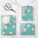 Retro Ghosts Blue Halloween Wrapping Paper Sheet