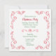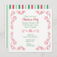 Bright, colourful, and cheerful is this cute Christmas Party invitation! It features a red retro style corner swirl border with images of gingerbread men and candy canes. Your custom text is in matching red and Holiday green at the centre, with a star emblem divider at the centre. The back of the invitation is a pretty red, green, and white candy stripe. Stunning and fun, and there is plenty of room for your own text.