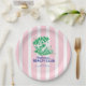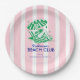 Retro Girl Beach Club Pink Stripes Birthday Party Paper Plate