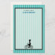 A cute retro graphic illustration. A silhouette of a woman in a ponytail, wearing a dress and riding a bicycle. The background is a turquoise blue striped pattern with alternating light and dark tones.. A transparent overlay with a black border sits in the centre for easy writing. The top says: a note from: (name). Personalise with your name.