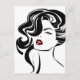 Lovely, vintage girly theme in black and white. A beautiful woman face with red lips and curly hair. Fun, retro drawing.