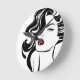 Lovely, vintage girly theme in black and white. A beautiful woman face with red lips and curly hair. Fun, retro drawing.