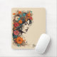 Retro Girl with Flowers in her Hair Mousepad with boho vibes from the 1960-1970's era of flower power. Customise the name to your own, or make it a personalised gift to someone else.