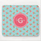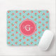 Retro girly turquoise cherry patterns monogram mouse pad