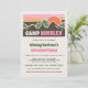 Celebrate in true outdoor adventure style with this retro-inspired camp birthday invitation! Featuring a bold sunset over layered mountains, earthy browns and greens, and playful pops of girly pink, this design brings all the nostalgic summer camp vibes with a modern twist.